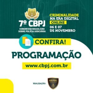 7° Congresso Brasileiro sobre polícia Judiciária; Dias 06 e 07 de novembro, confira programação
