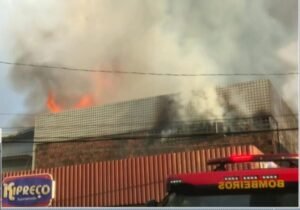 Um incêndio atingiu um supermercado no bairro Jardim Planalto, próximo à Avenida Cruz das Armas, em João Pessoa, na madrugada desta quinta-feira (6).