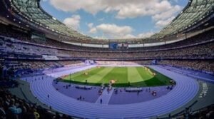 Após o último pódio, alguns voluntários das Olimpíadas de Paris entraram no estádio para serem homenageados – ao todo, cerca de 45 mil pessoas trabalharam voluntariamente.