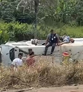 Um capotamento envolvendo um carro-forte foi registrado na manhã deste sábado (20 de dezembro de 2025), na rodovia estadual PB-034, no trecho entre os municípios de Alhandra e Mata Redonda, no Litoral Sul da Paraíba.