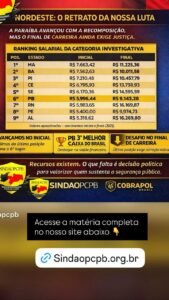 O SINDAOPCPB divulga a tabela salarial atualizada da categoria investigativa no Nordeste. A comparação mostra onde estamos e o caminho que ainda precisamos percorrer.